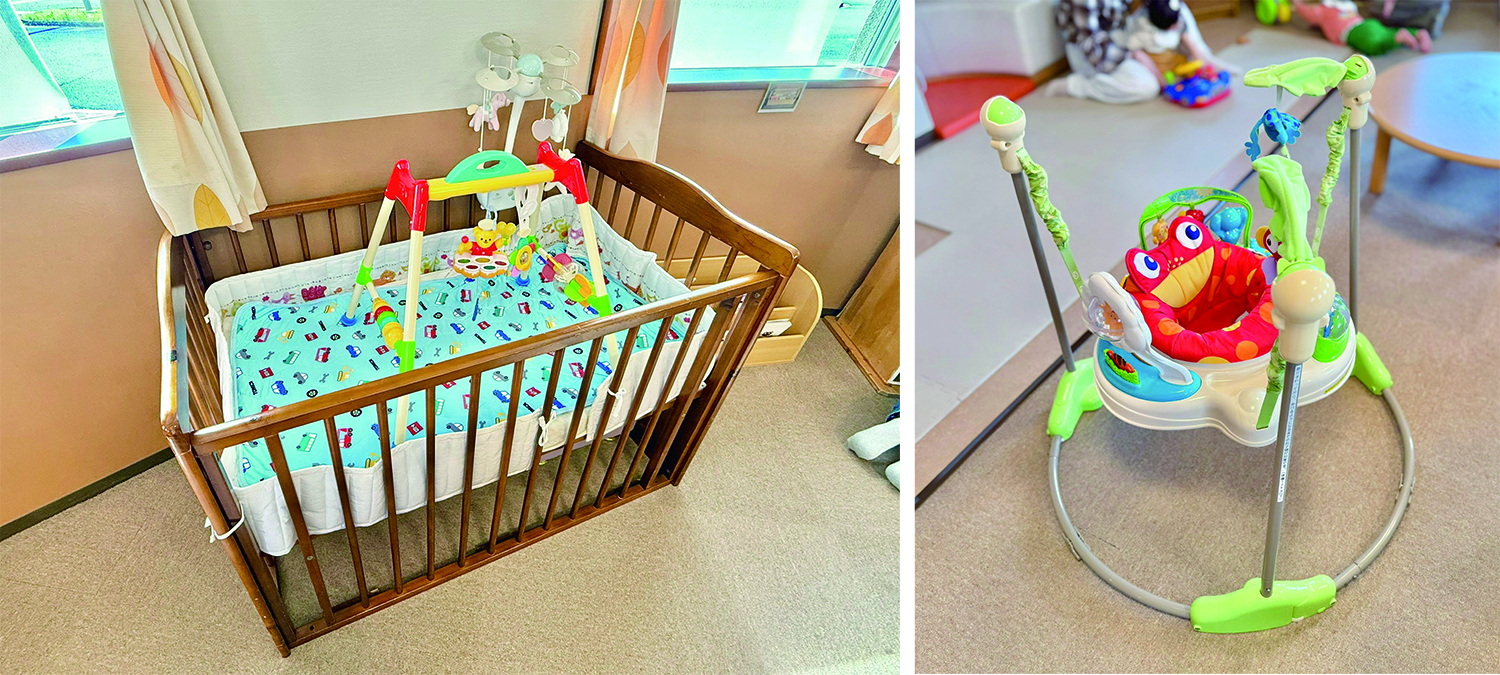 低月齢のお子さま向けに、ベビーベッドやジャンパーなども完備されています。
