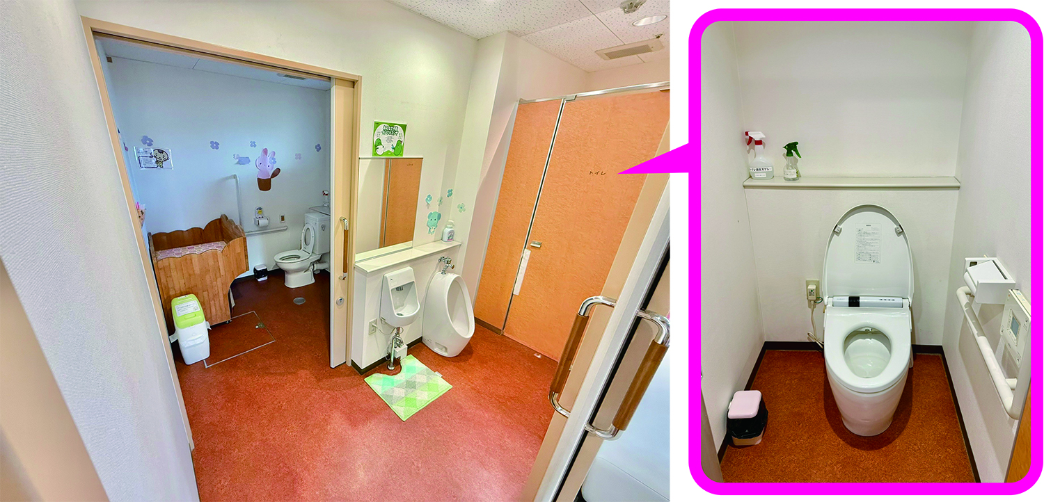 ドアを開けて手前には大人用の個室トイレ、奥にはお子さま用のトイレがございます。
