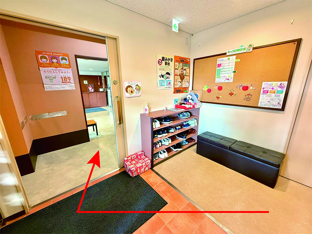 玄関に入ると、スタッフの方がお声がけくださるので案内に沿ってお進みください。