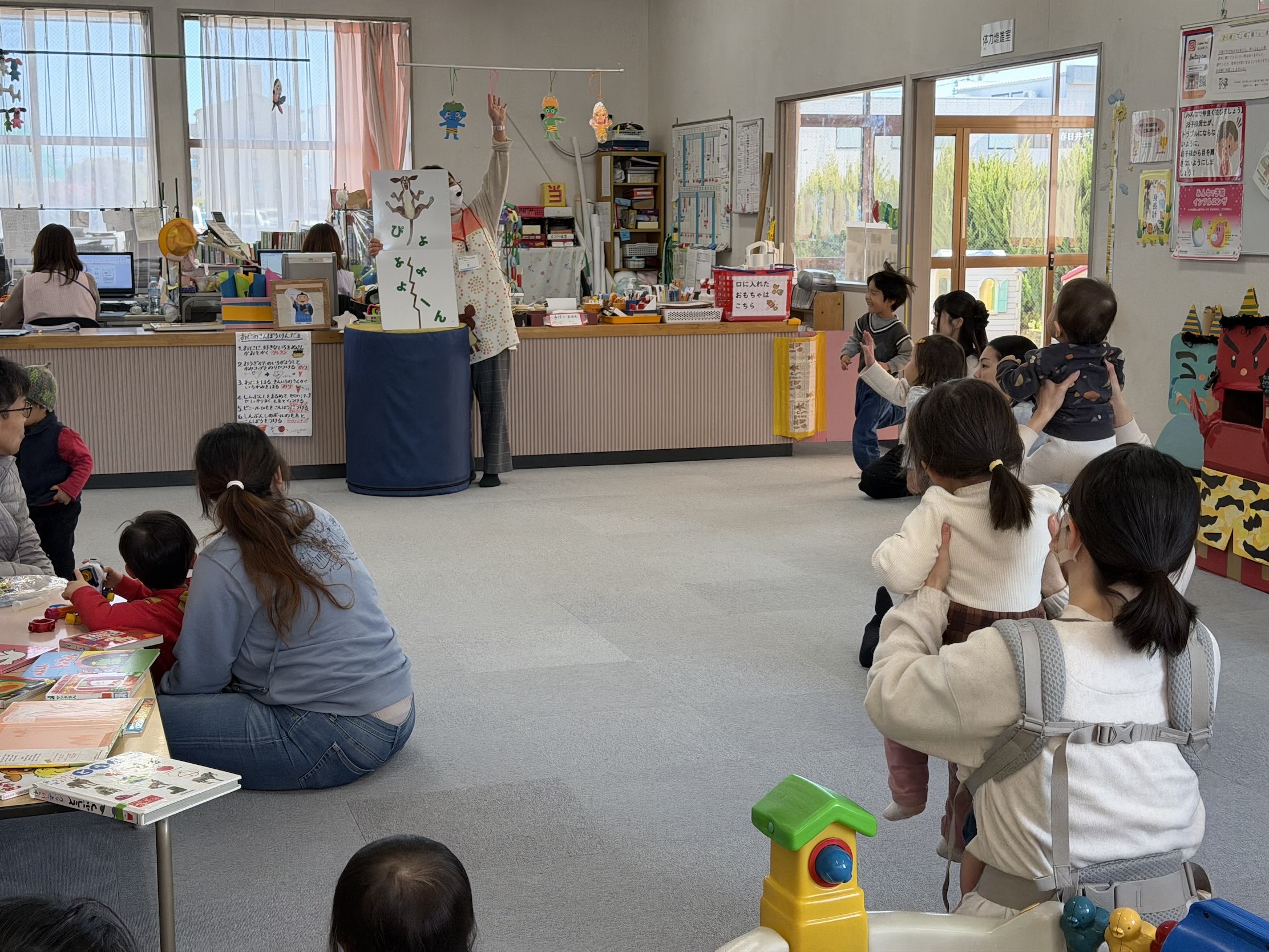 最後は「ぴよーん」。ページに合わせて子ども達も「ぴよーん」とジャンプ。会場は笑顔でいっぱいになりました。