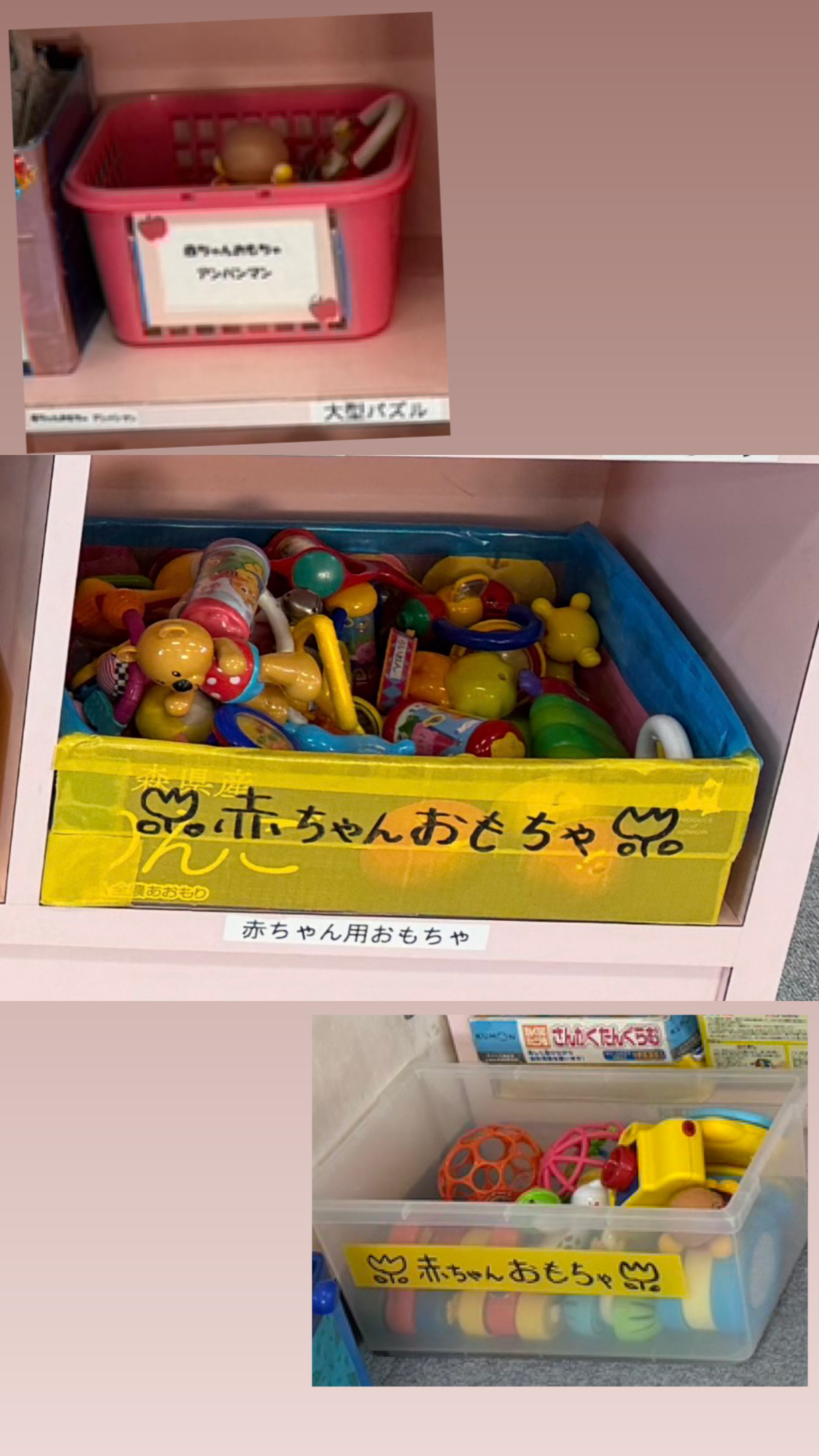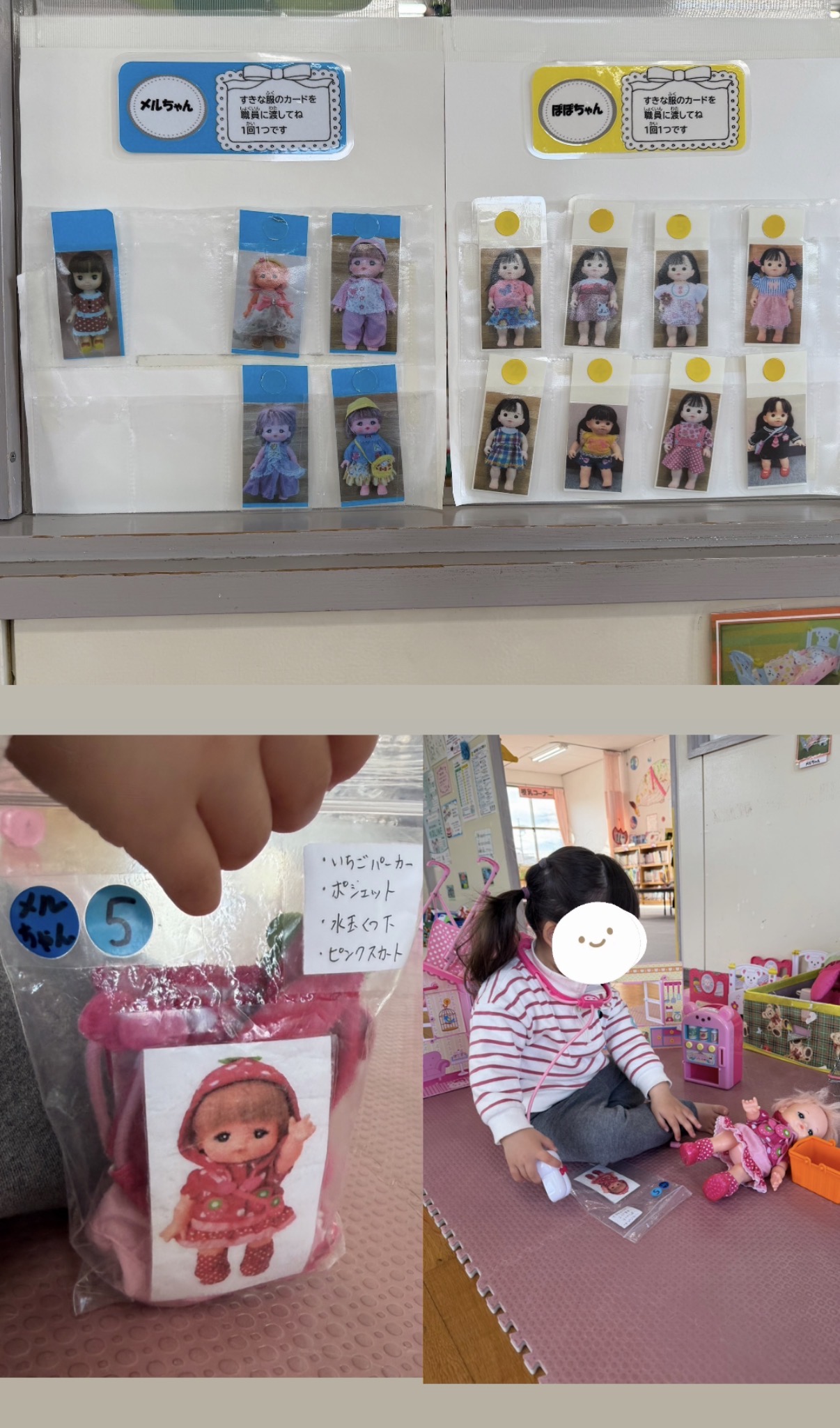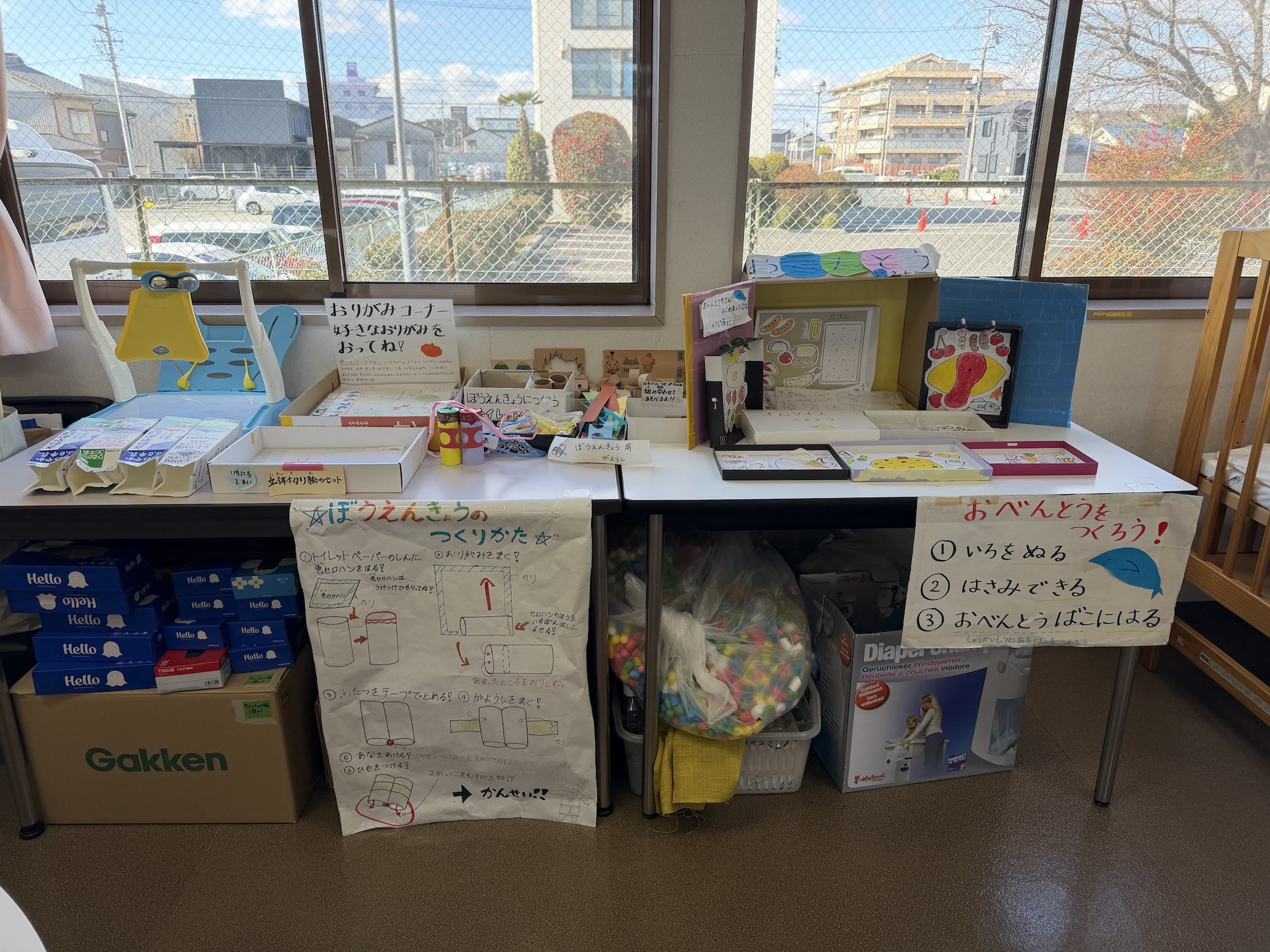 既成のおもちゃだけでなく、季節に合わせた手作りのおもちゃも沢山あり、子ども達に楽しんでほしいという思いを随所に感じました。