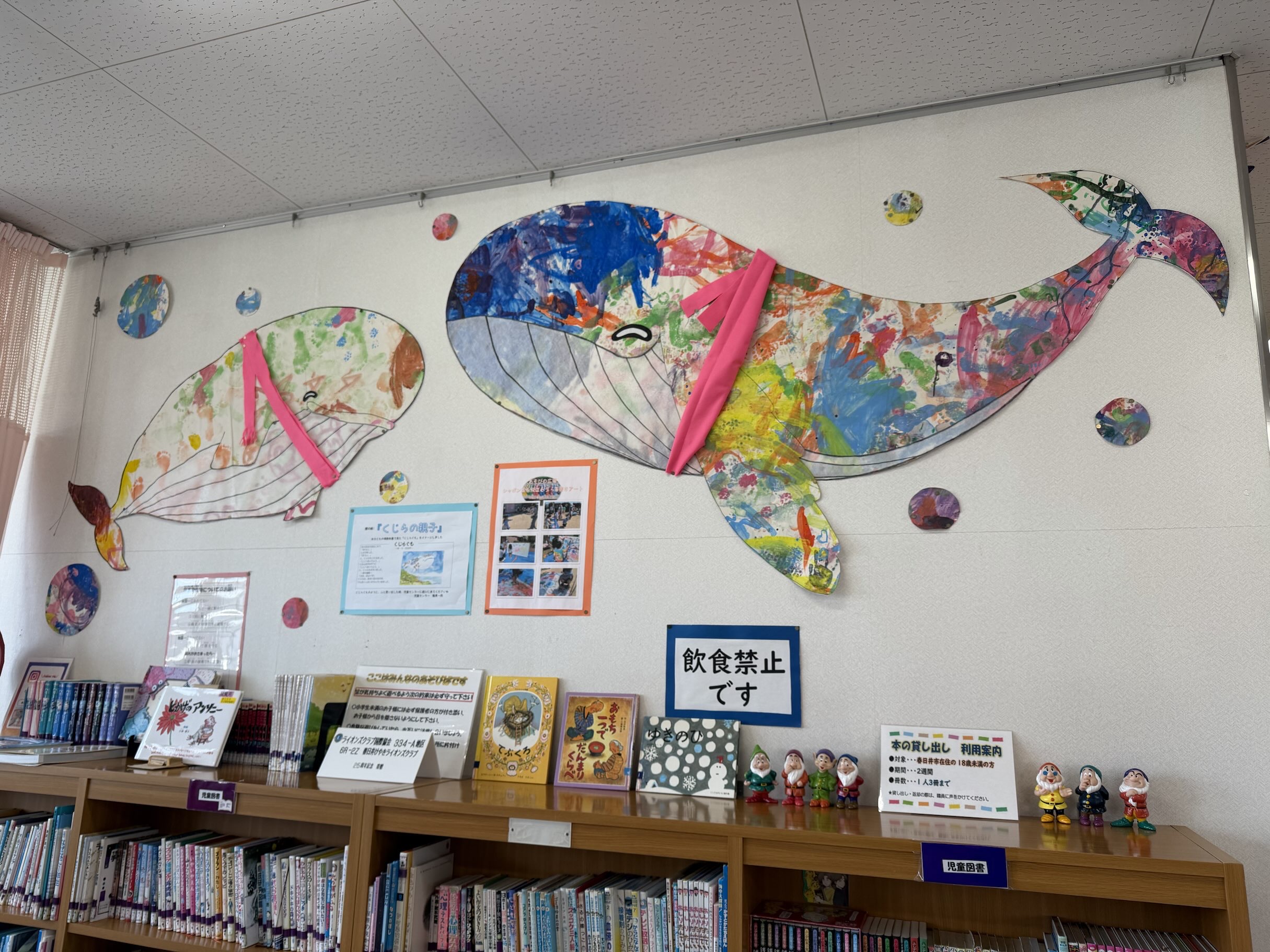 季節の工作やお絵描きは、児童図書室にある机で楽しむことができます。必要なものは受付で全て借りられます。
