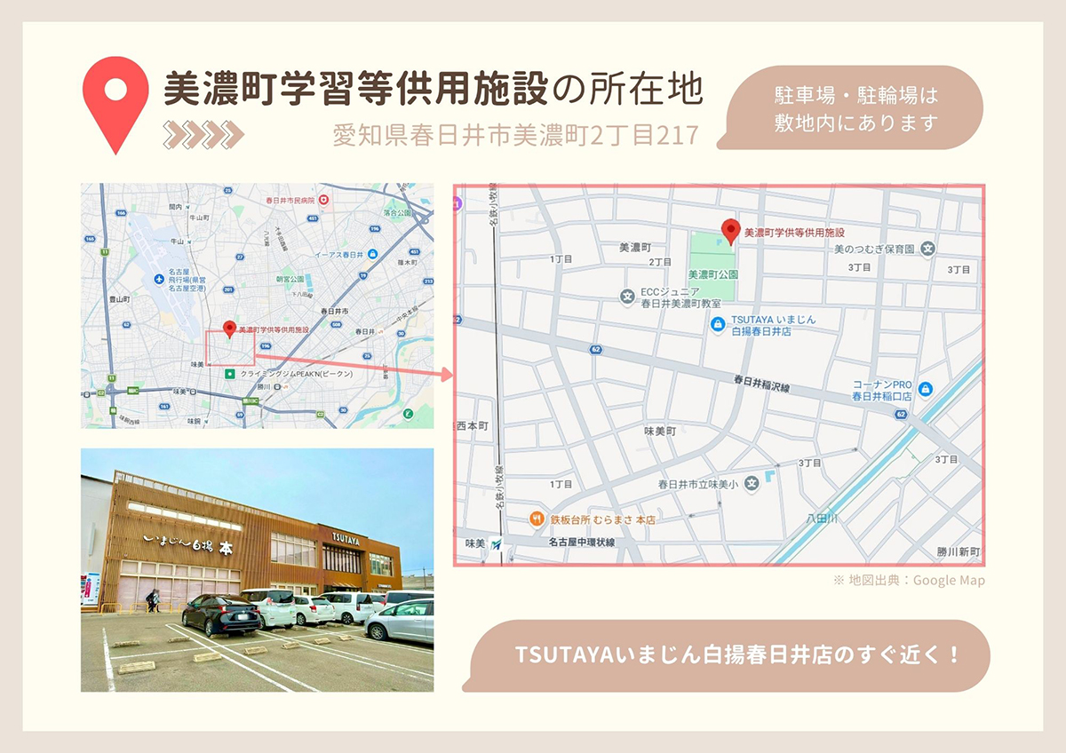 ↑室内活動のときは「 美濃町学習等供用施設 」に集まります!