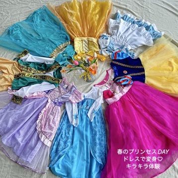 100〜140サイズのドレスの貸し出しとヘアアクセサリーやイヤリングの貸し出しがあります。